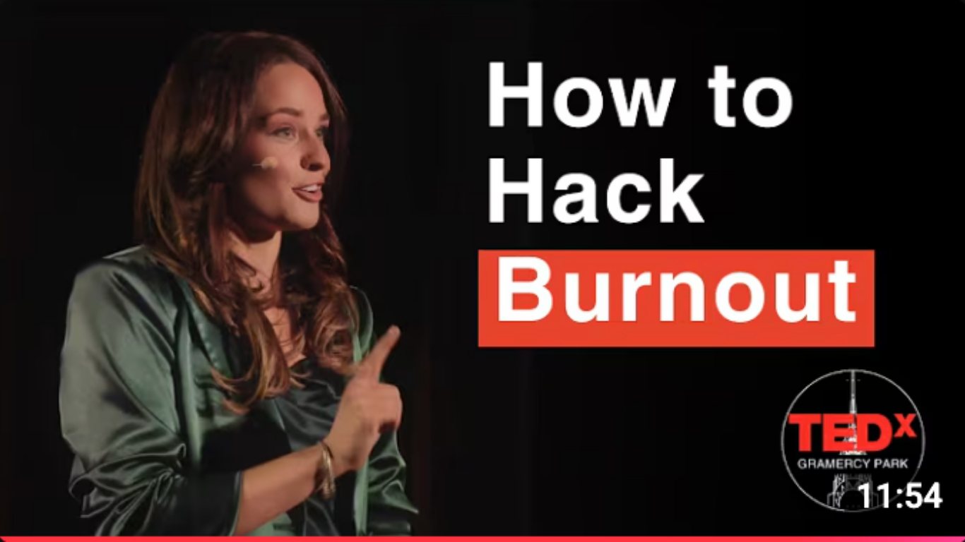 I created a science-informed practice to help guide my system out of survival mode and back to safety, inspired by the way animals do this within minutes. In my TEDx talk, I share the burnout hacking method that I call the "2-Minute Stress Reset".